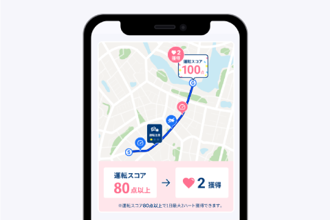 安全運転で一定以上のスコアだった場合、その都度ハートが獲得できるようになりました。