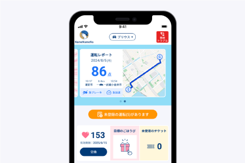 画面デザインが変わったことで、必要な情報がすぐに見つかるようになりました。特にホーム画面では、運転スコアを地図と一緒に確認できるので、運転の振り返りに便利です。