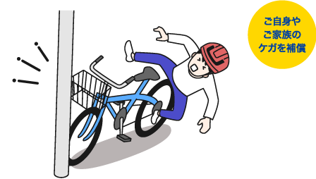 ご自身やご家族が、自転車に乗っている間にケガをした場合や歩行中に自転車とぶつかりケガをした場合などに、あらかじめ設定された金額を保険金としてお支払いします。
