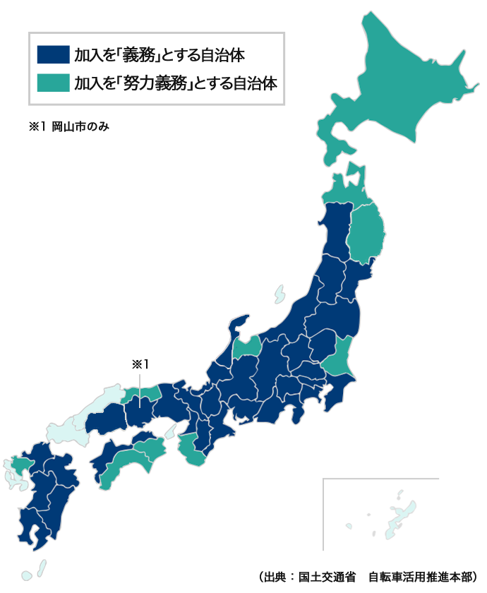 参考:自転車保険等の加入を義務化している自治体(2023年4月)